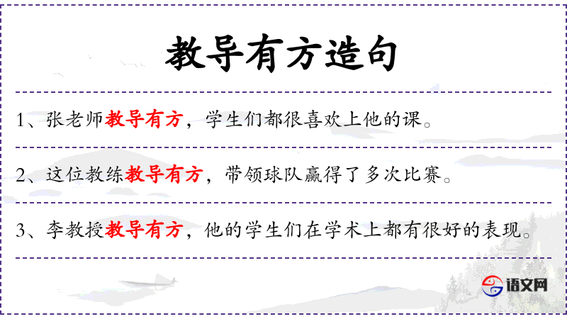 在**文化中,教育被视为非常重要,导师的角色往往被赋予很高的期望和尊重。成语“教导有方”体现了对教育方法和效果的正面评价。