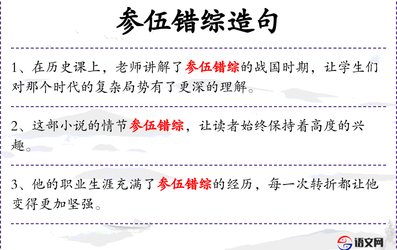 句子:“这部小说的情节参伍错综,让读者始终保持着高度的兴趣。”