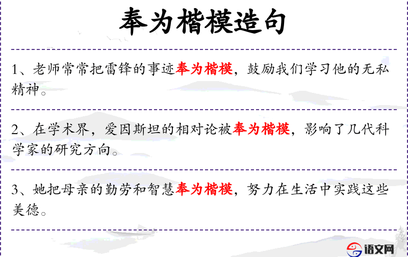 - 文化意义:在*文化中,“楷模”一词具有深厚的文化内涵,常用来形容值得学和效仿的典范。