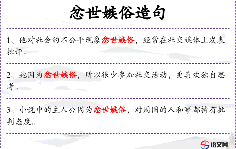 - 忿世嫉俗:对社会现实不满,持有批判态度。