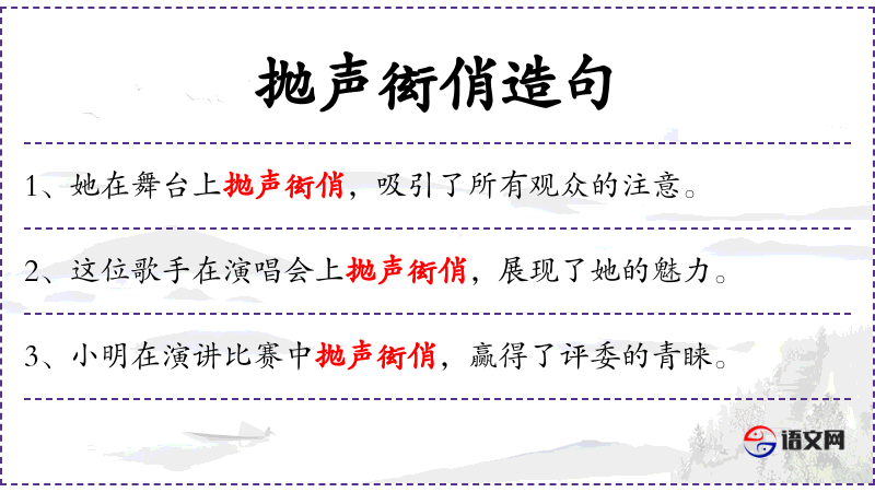 句子:“小明在演讲比赛中抛声珒俏,赢得了评委的青睐。”