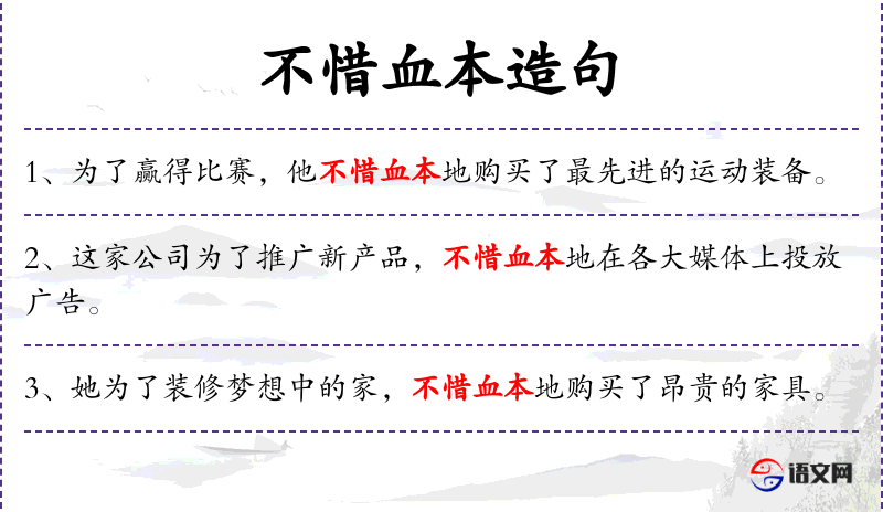 1. 【不惜血本】 为了达到目的不吝惜所花费的代价。