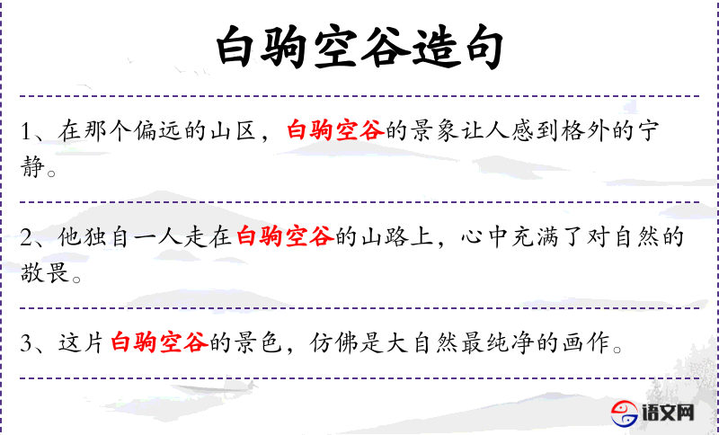7. 【白驹空谷】 - 白驹:白色骏马,比喻贤能者。比喻贤能之人在野而不能出仕。后也比喻贤能者出仕而谷空。