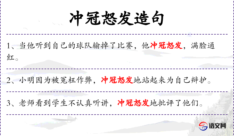 句子:“小明因为被冤枉作弊,冲冠怒发地站起来为自己辩护。”