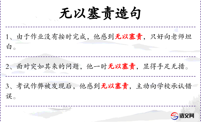 句子:“由于作业没有按时完成,他感到无以塞责,只好向老师坦白。”