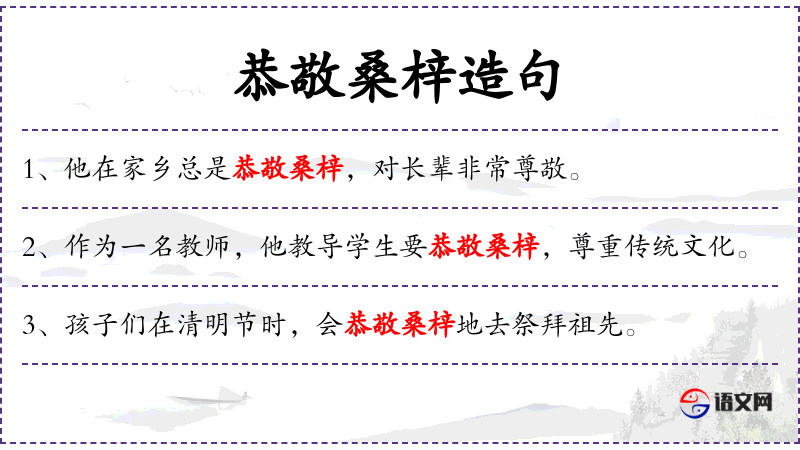 句子:“学生们被教导要恭敬桑梓,珍惜家乡的一草一木。”