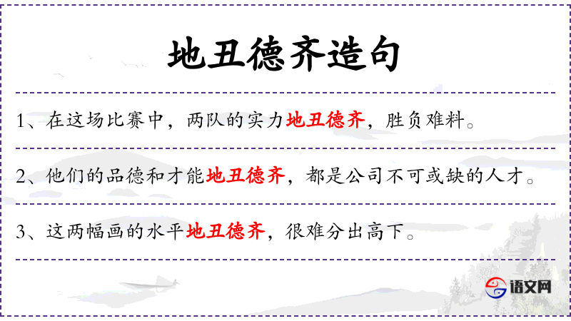 - 谓语:“地丑德齐”、“精彩纷呈”