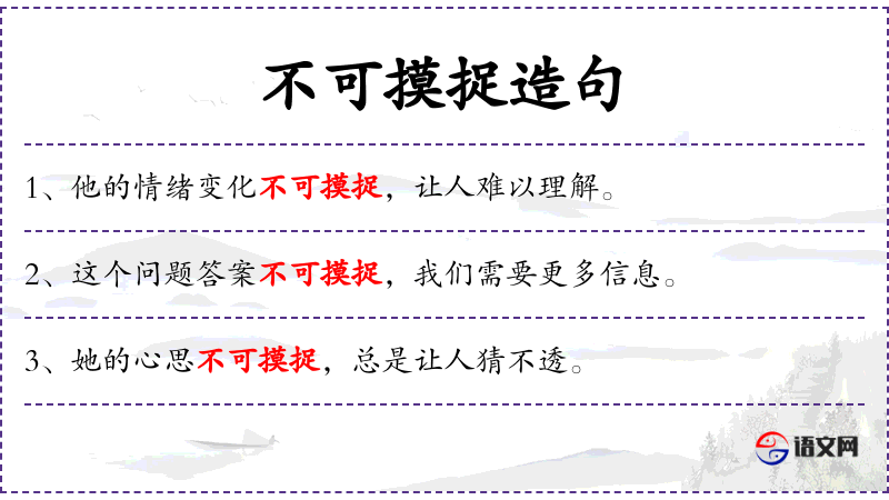 1. 【不可摸捉】 摸捉:揣测,预料。指对人或事物无法猜测和估量。