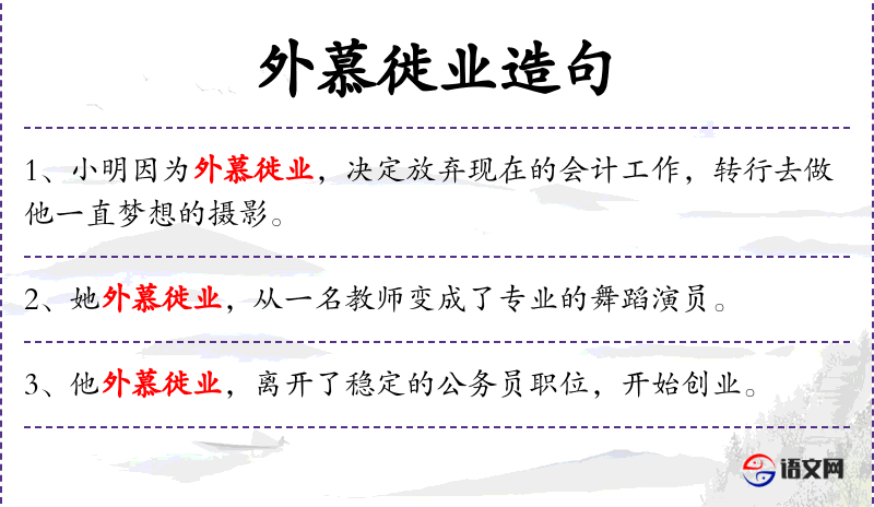 - “外慕徙业”是一个中文成语,反映了**人对于职业变化的看法和态度。