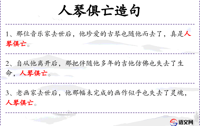 - 人琴俱亡:这是一个成语,原意是指人和琴都不在了,比喻人去世后,与之相关的事物也失去了意义。