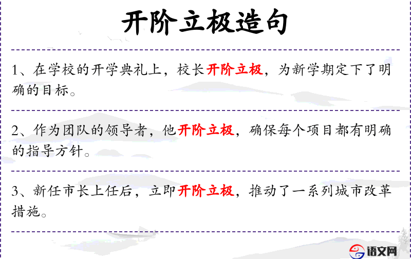 在翻译中,“开阶立极”被解释为“set the stage and establish the foundation”(英文),“堅固な基盤を築く”(日文),和“die Bühne geschaffen und die Grundlage gelegt”(德文),这些表达都准确地传达了原句中成语的深层含义。