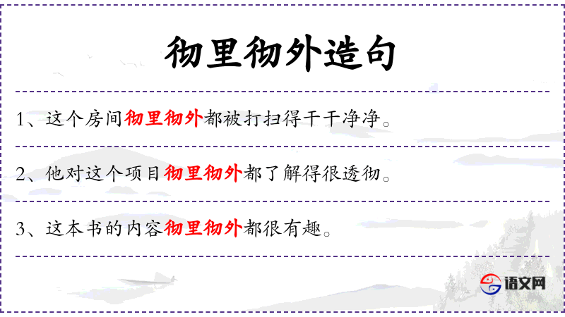- 彻里彻外:表示从内到外,全面的意思。