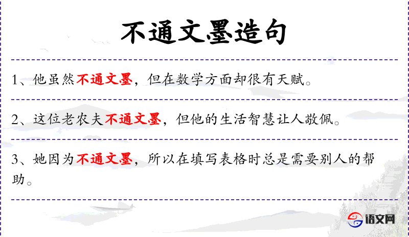 1. 【不通文墨】 通:精通;文墨:指写文章、著述等。指人文化水平不高或识字不多。