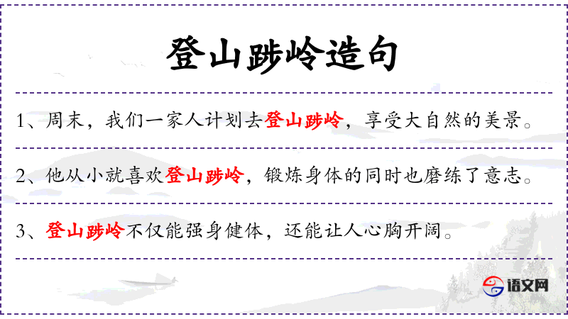 4. 【登山踄岭】 踄:同“步”,蹈,走。形容长途跋涉,路途辛苦。