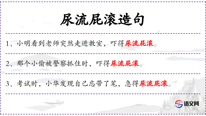 - 补语:紧张得尿流屁滚