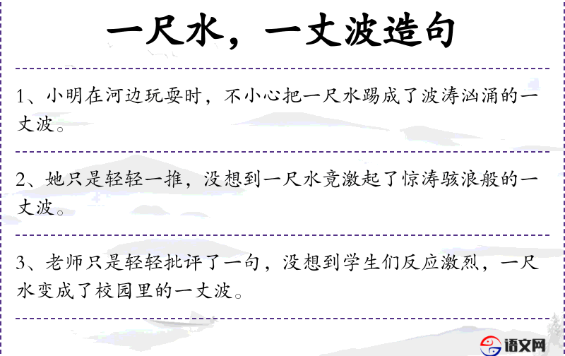 - 状语:只是轻轻一、没想到、一尺水