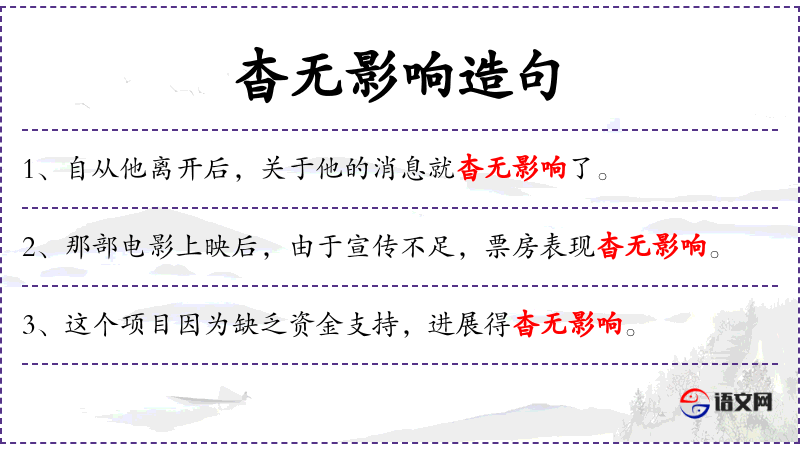 1. 【杳无影响】 - 没有踪影,没有音信。