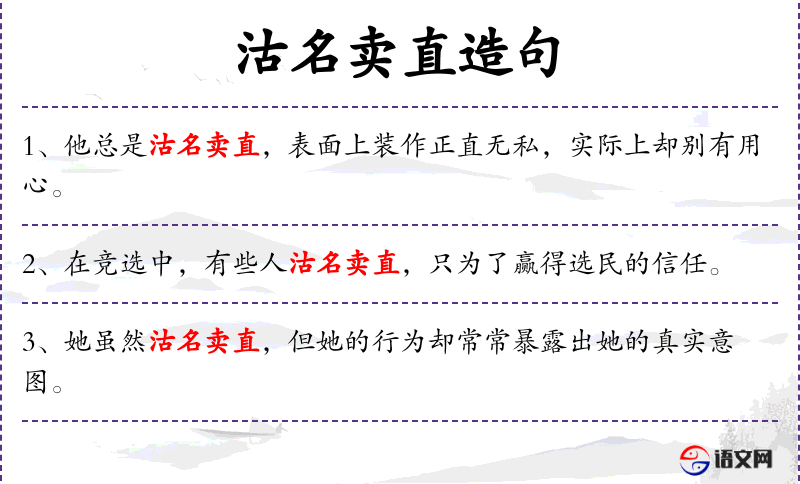 1. 【沽名卖直】 - 故作正直以猎取名誉。