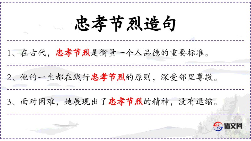 - 忠孝节烈:指忠诚、孝顺、节操和勇敢的精神。
