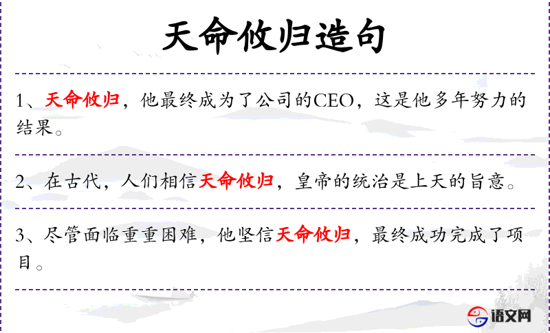- 天命攸归:意味着命运或天意注定某事会发生。