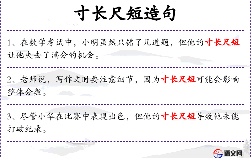 句子中使用了“寸长尺短”这一成语,比喻事物有长有短,体现了中文表达中喜欢用比喻和成语的特点。