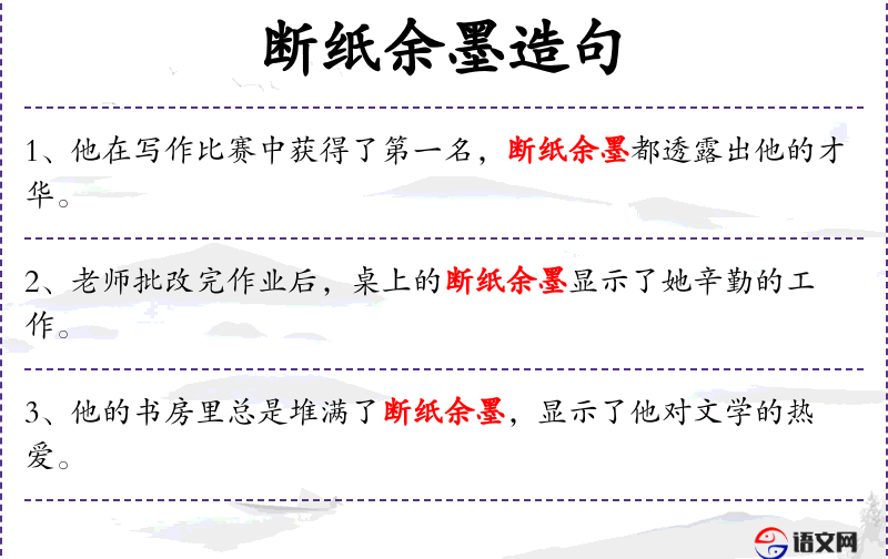 - 宾语:“断纸余墨”