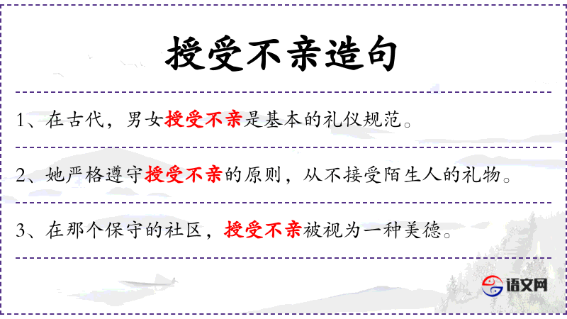- 授受不亲:成语,意指在人际交往中保持距离,不轻易接受或给予。