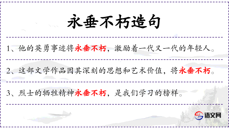 垂:留传后世;朽:腐烂,磨灭。指光辉的事迹和伟大的精神永远流传,不会磨灭。