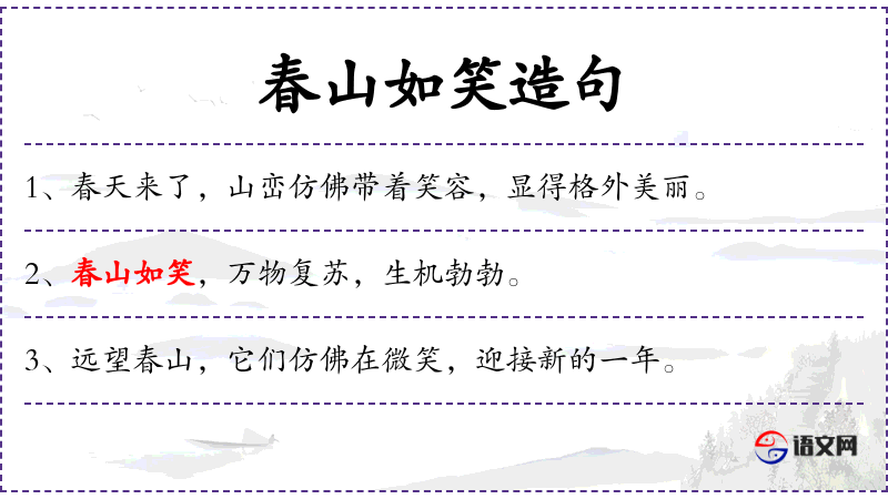 - 这是一个比喻句,将春山的景色比喻为笑脸。