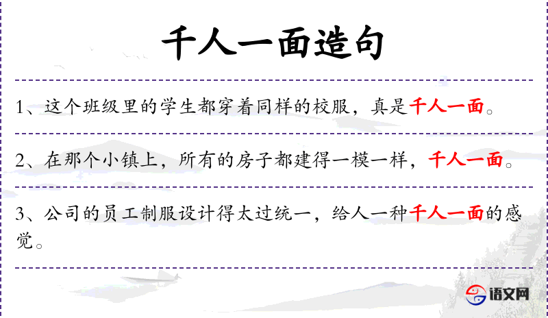 句子:“这个班级里的学生都穿着同样的校服,真是千人一面。”