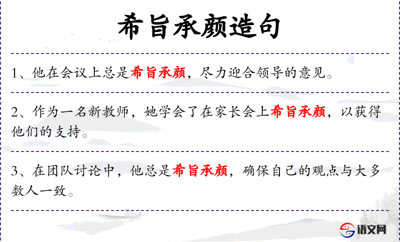 - 希旨承颜:表示迎合或顺从他人的意愿。