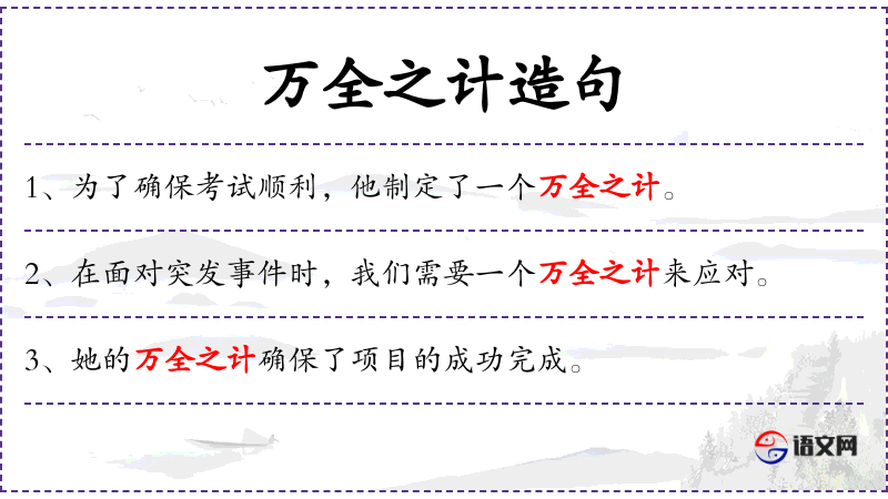 - 万全之计:在**文化中,强调做事要有周全的考虑和准备,以防万一。