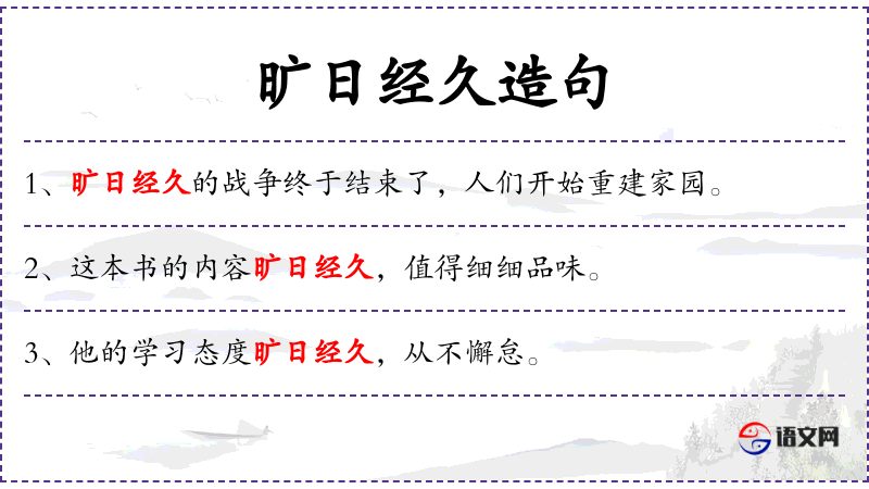 旷日经久的:形容词短语,表示时间很长,持续很久。