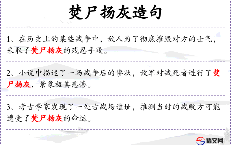 6. 【焚尸扬灰】 烧掉尸骨,扬弃骨灰。形容非常仇视。
