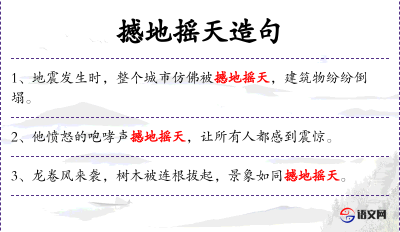 - 撼地摇天:这个成语源自**古代神话,形容力量极大,能够改变天地。