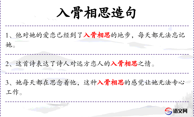 “入骨相思”是一个成语,源自**古代文学,常用来形容对某人的思念非常深切,几乎到了无法自拔的地步。这个成语反映了中文文化中对情感表达的细腻和深刻。