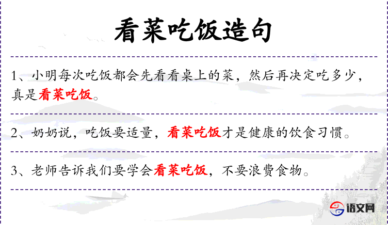1. 【看菜吃饭】 - 比喻根据具体情况办事。