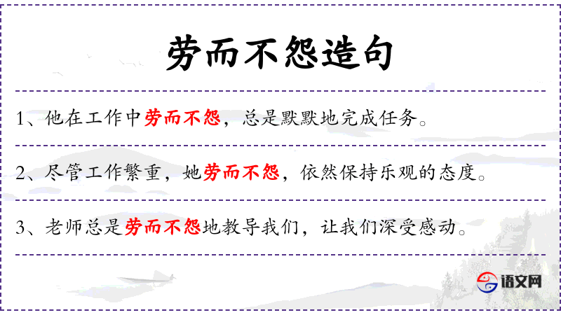 - 劳而不怨:形容辛勤工作但不抱怨。