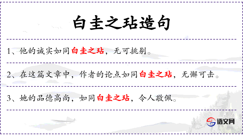 1. 【白圭之玷】 白玉圭上的一个斑点。比喻人或物大体很好,只是有些小缺点。