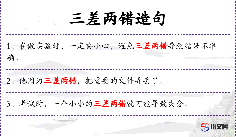 1. 【三差两错】 - 泛指差错。比喻偶然的差错。
