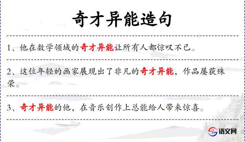 - 奇才异能:名词,指非凡的才能和特殊的能力。