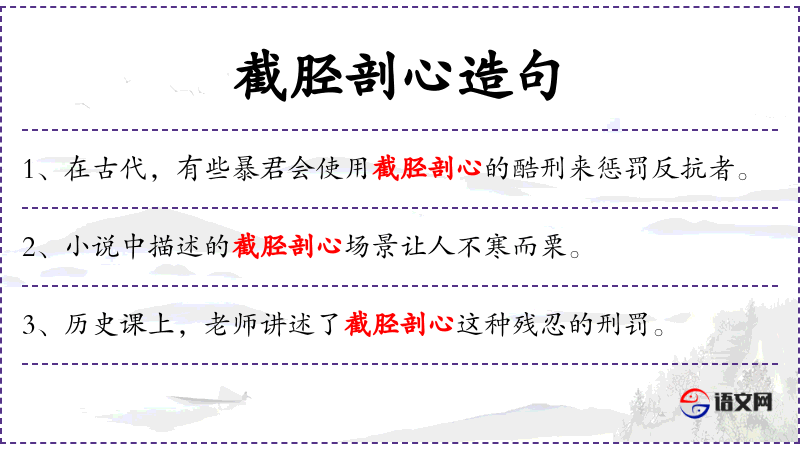 - 定语:对截胫剖心这种刑罚的历史背景
