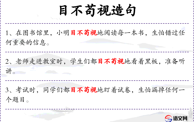 3. 【目不苟视】 - 眼睛不随便乱看。形容为人正派。
