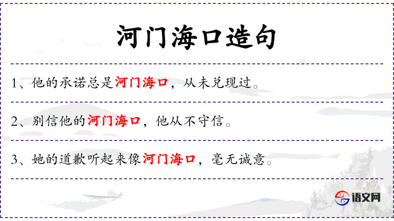 1. 【河门海口】 - 比喻说大话。