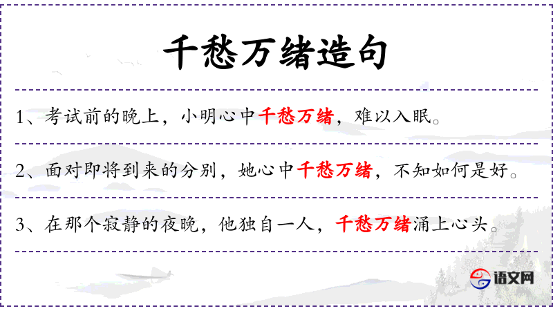 - 千愁万绪:成语,形容心中有无数的忧愁和思绪。