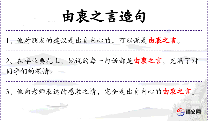 6. 【由衷之言】 衷:内心。出自内心的话。