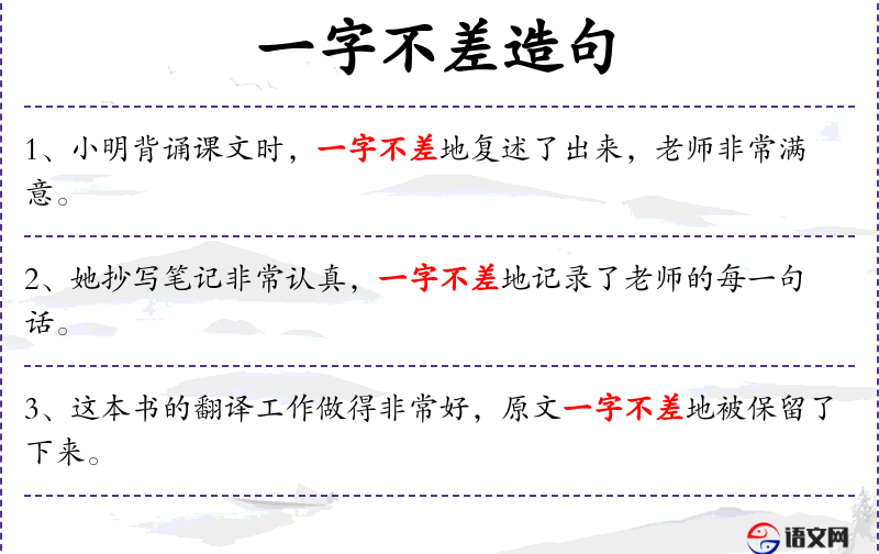 1. 【一字不差】 一个字也没有更改,与原文雷同。