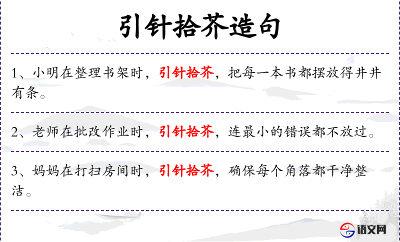 - 引针拾芥:这个成语源自《庄子·秋水》,比喻做事细致认真,不放过任何细节。