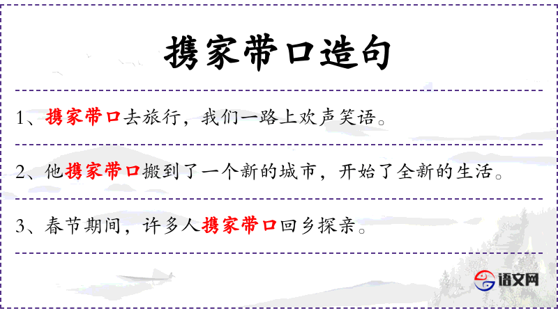 - 携家带口:意思是带着全家人,强调家庭成员一起行动。