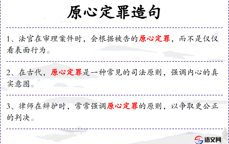 - 原心定罪:一种司法原则,强调根据犯罪者的内心真实意图来定罪。